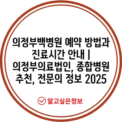 의정부백병원 예약 방법과 진료시간 공지 | 의정부의료법인, 종합병원 추천, 전연락 정보 2025