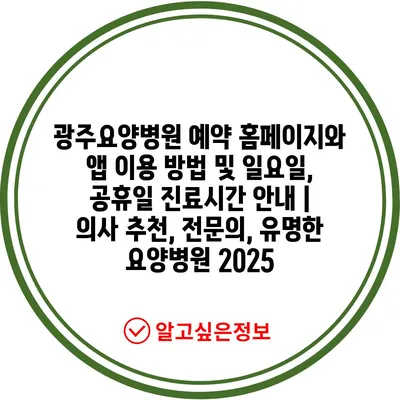 광주요양병원 예약 홈페이지와 앱 이용 방법 및 일요일, 공휴일 진료시간 공지 | 의사 추천, 전연락, 유명한 요양병원 2025 에 대해 자주 묻는 질문 TOP 5
