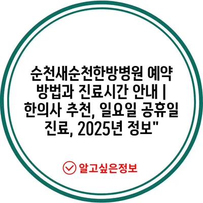 순천새순천한방병원 예약 방법과 진료시간 공지 | 한의사 추천, 일요일 공휴일 진료, 2025년 정보” 에 대해 자주 묻는 질문 TOP 5