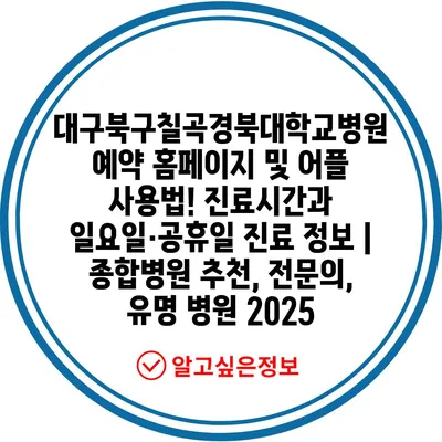 ✅ 대구북구칠곡경북대학교병원 예약 방법과 꿀팁을 지금 바로 알아보세요!