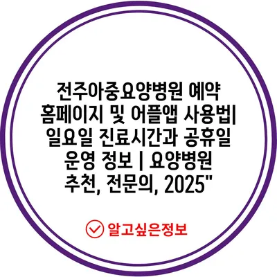 전주아중요양병원 예약 홈페이지 및 어플앱 사용법| 일요일 진료시간과 공휴일 운영 정보 | 요양병원 추천, 전연락, 2025″ 에 대해 자주 묻는 질문 TOP 5