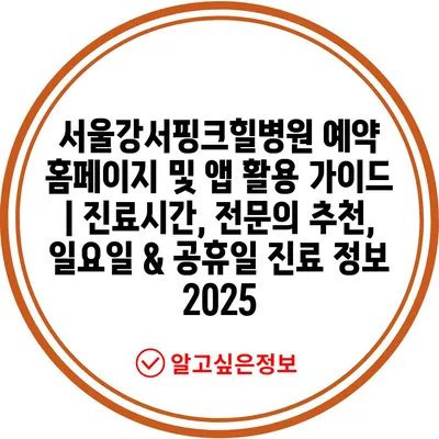 서울강서핑크힐병원 예약 홈페이지 및 앱 활용 설명서 | 진료시간, 전연락 추천, 일요일 & 공휴일 진료 정보 2025 에 대해 자주 묻는 질문 TOP 5