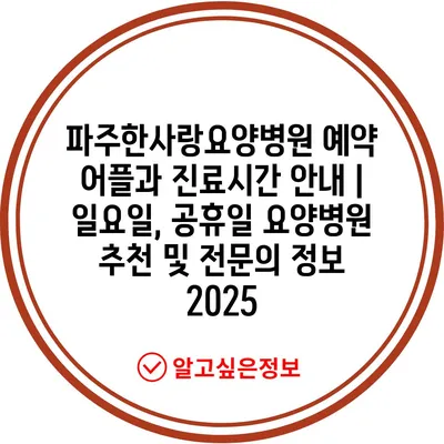 파주한사랑요양병원 예약 어플과 진료시간 공지 | 일요일, 공휴일 요양병원 추천 및 전연락 정보 2025 에 대해 자주 묻는 질문 TOP 5