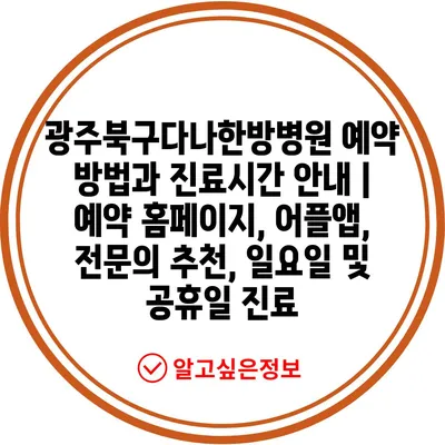 ✅ 광주북구다나한방병원의 예약 방법과 진료시간을 지금 바로 알아보세요.