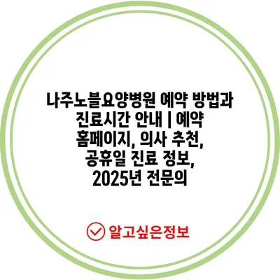 ✅ 나주노블요양병원의 예약 방법과 진료시간을 알아보세요.