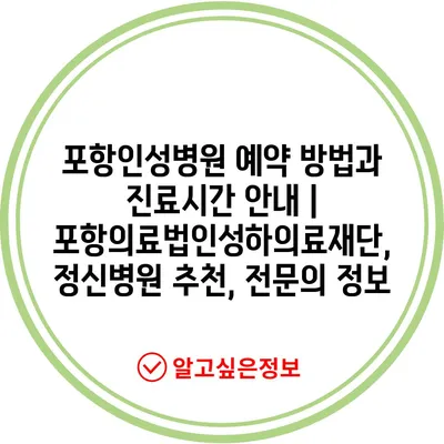 포항인성병원 예약 방법과 진료시간 공지 | 포항의료법인성하의료재단, 정신병원 추천, 전연락 정보 에 대해 자주 묻는 질문 TOP 5