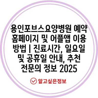 용인포브스요양병원 예약 홈페이지 및 어플앱 이용 방법 | 진료시간, 일요일 및 공휴일 공지, 추천 전연락 정보 2025에 대해 소개합니다.