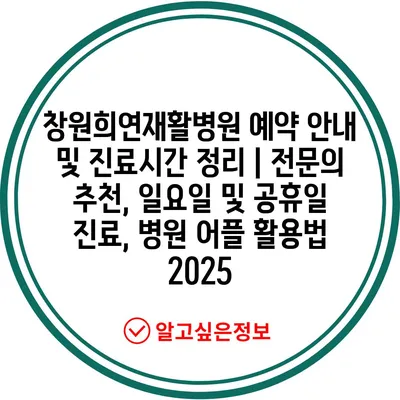 창원희연재활병원 예약 안내 및 진료시간 정리 | 전문의 추천, 일요일 및 공휴일 진료, 병원 어플 활용법 2025
