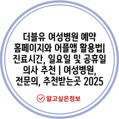 더블유 여성병원 예약 홈페이지와 어플앱 활용법| 진료시간, 일요일 및 공휴일 의사 추천 | 여성병원, 전연락, 추천받는곳 2025 에 대해 자주 묻는 질문 TOP 5