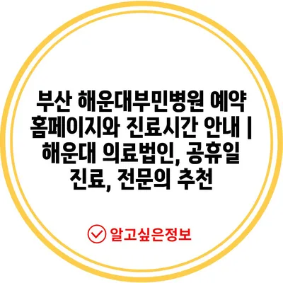 ✅ 해운대부민병원에서의 진료시간과 예약 방법을 알아보세요.