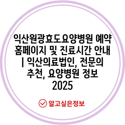 ✅ 익산원광효도요양병원의 진료시간과 예약 방법을 자세히 알아보세요.