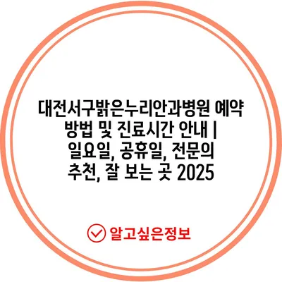 대전서구밝은누리안과병원 예약 방법 및 진료시간 공지 | 일요일, 공휴일, 전연락 추천, 잘 보는 곳 2025 에 대해 자주 묻는 질문 TOP 5