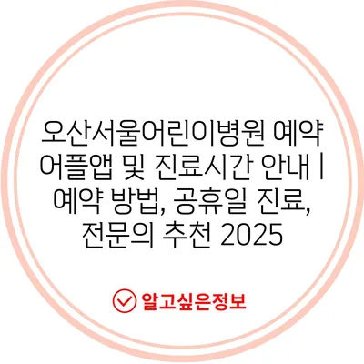 ✅ 오산서울어린이병원 예약 절차를 자세히 알아보세요.