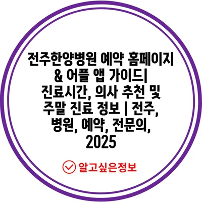 전주한양병원 예약 홈페이지 & 어플 앱 가이드| 진료시간, 의사 추천 및 주말 진료 정보 | 전주, 병원, 예약, 전문의, 2025