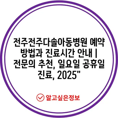 ✅ 전주다솔아동병원의 진료시간과 예약 방법을 알아보세요!