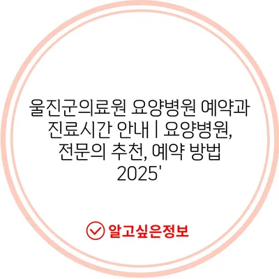 ✅ 울진군의료원 요양병원 예약 방법을 지금 바로 알아보세요!