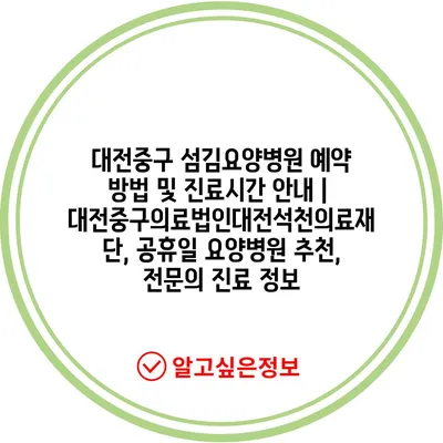 대전중구 섬김요양병원 예약 방법 및 진료시간 공지 | 대전중구의료법인대전석천의료재단, 공휴일 요양병원 추천, 전연락 진료 정보 에 대해 자주 묻는 질문 TOP 5