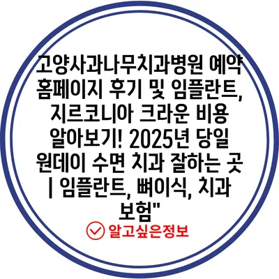 고양사과나무치과병원 예약 홈페이지 후기 및 임플란트, 지르코니아 크라운 비용 알아보기! 2025년 당일 원데이 수면 치과 잘하는 곳 | 임플란트, 뼈이식, 치과 보험에 대해 알아보겠습니다.