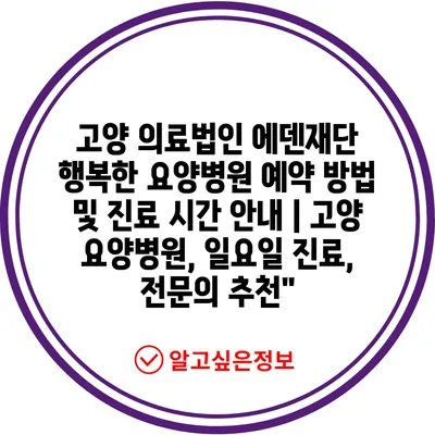 고양 의료법인 에덴재단 행복한 요양병원 예약 방법 및 진료 시간 공지 | 고양 요양병원, 일요일 진료, 전연락 추천