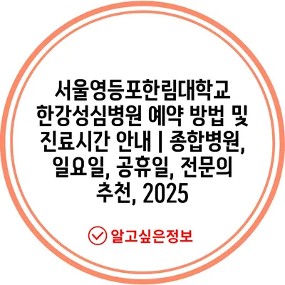 서울영등포한림대학교 한강성심병원 예약 방법 및 진료시간 공지 | 종합병원, 일요일, 공휴일, 전연락 추천, 2025 에 대해 자주 묻는 질문 TOP 5