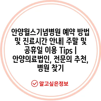 ✅ 안양윌스기념병원의 진료시간과 예약 방법을 지금 바로 알아보세요.