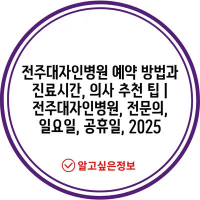 전주대자인병원 예약 방법과 진료시간, 의사 추천 팁 | 전주대자인병원, 전연락, 일요일, 공휴일, 2025 에 대해 자주 묻는 질문 TOP 5