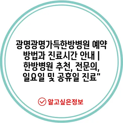 광명광명가득한방병원 예약 방법과 진료시간 공지 | 한방병원 추천, 전연락, 일요일 및 공휴일 진료”에 대해 자주 묻는 질문 TOP 5