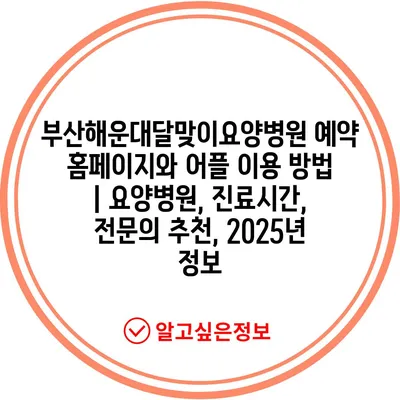 부산해운대달맞이요양병원 예약 홈페이지와 어플 이용 방법 | 요양병원, 진료시간, 전연락 추천, 2025년 정보 에 대해 자주 묻는 질문 TOP 5