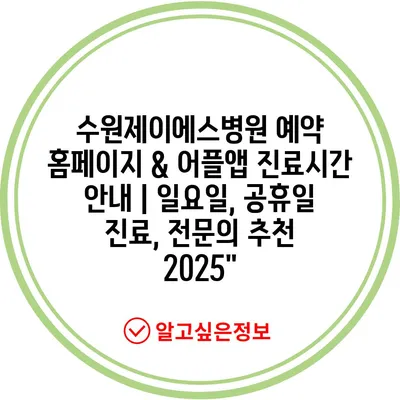 수원제이에스병원 예약 홈페이지 & 어플앱 진료시간 공지 | 일요일, 공휴일 진료, 전연락 추천 2025