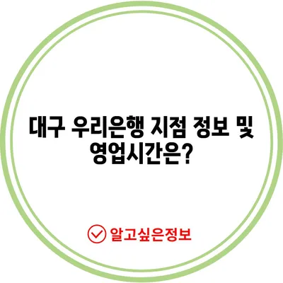 💡 대구 우리은행 지점에서 제공하는 서비스와 영업시간을 알아보세요. 💡