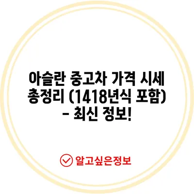 아슬란 중고차 가격 시세 총정리 (1418년식 포함) – 최신 정보!