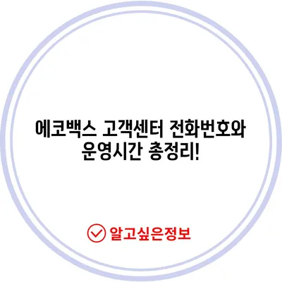 💡 에코백스 고객센터의 전화번호와 운영시간을 지금 바로 확인해 보세요! 💡
