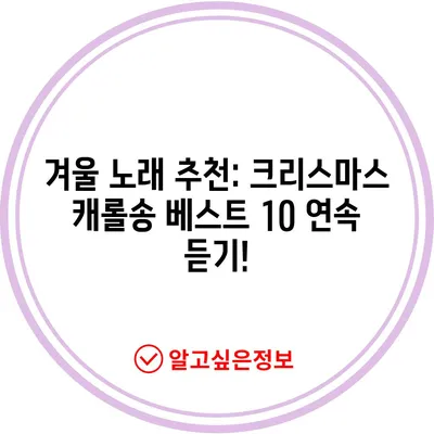 겨울철에 듣고 싶은 겨울노래추천 리스트를 소개합니다. 다양한 장르의 캐롤송들이 포함되어 있으며, 이들은 각각의 매력을 가지고 있습니다. 이 리스트는 여러분이 크리스마스 시즌을 더 특별하게 보내는 데 도움을 줄 것입니다.