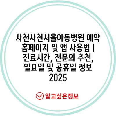 사천사천서울아동병원 예약 홈페이지 및 앱 사용법 | 진료시간, 전연락 추천, 일요일 및 공휴일 정보 2025에 대해 알아보겠습니다.