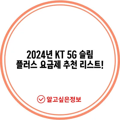 2024년 KT 5G 슬림 플러스 요금제 추천 리스트!