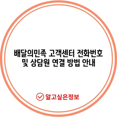 배달의민족 고객센터 전화번호 및 상담원 연결 방법 안내