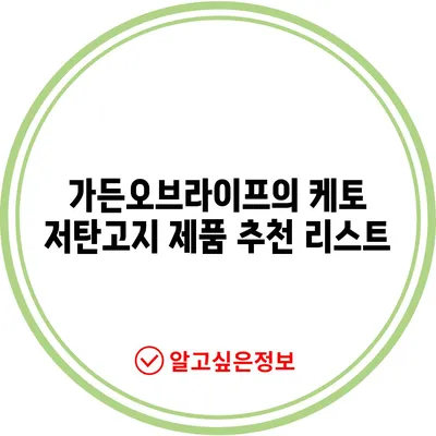 가든오브라이프의 케토 저탄고지 제품 추천 리스트