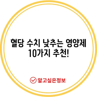 이번 블로그 포스트에서는 혈당 수치를 낮추는 데 도움이 되는 10가지 영양제를 살펴보겠습니다. 혈당 수치를 조절하는 것은 당뇨병 관리에 필수적이며, 적절한 영양제를 추가하는 것이 큰 도움을 줄 수 있습니다. 특정 성분들이 어떻게 혈당 조절에 기여하는지를 함께 알아보도록 하겠습니다.