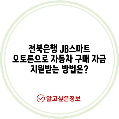 💡 JB스마트 오토론으로 자동차 구매 자금을 쉽게 지원받는 방법을 알아보세요. 💡