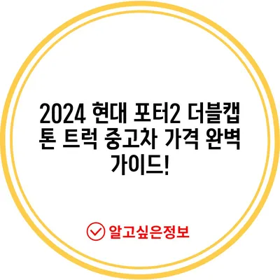 2024 현대 포터2 더블캡 톤 트럭 중고차 가격 완벽 가이드!