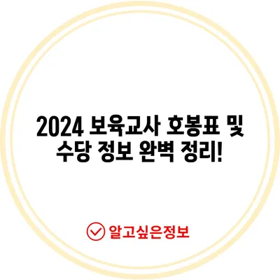 💡 2024 보육교사 호봉표와 수당 정보를 지금 바로 알아보세요! 💡