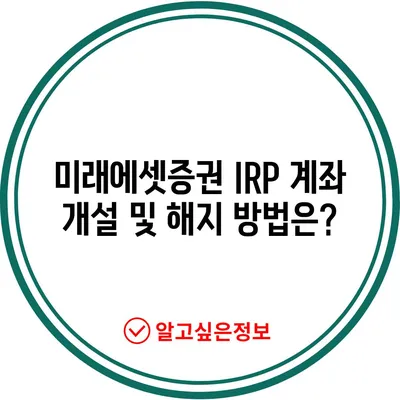 💡 미래에셋증권 IRP 계좌 개설과 해지 방법을 자세히 알아보세요. 💡
