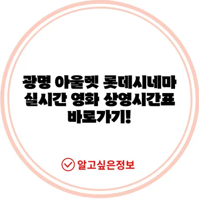 광명 아울렛 롯데시네마 실시간 영화 상영시간표를 확인하고 다양한 영화 관람 정보를 알아보세요. 편리한 예매 방법과 시설 정보를 제공합니다.