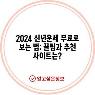 💡 2024년 신년운세를 무료로 알아보세요! 다양한 사이트와 팁을 제공합니다. 💡