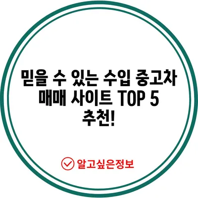 믿을만한 수입 중고차 매매 사이트를 찾고 계신가요? TOP 5 추천 리스트를 통해 안전하게 나만의 드림카를 구매하세요.