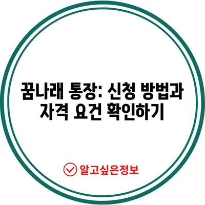 💡 꿈나래 통장의 자격 요건과 신청 방법을 쉽게 알아보세요. 💡