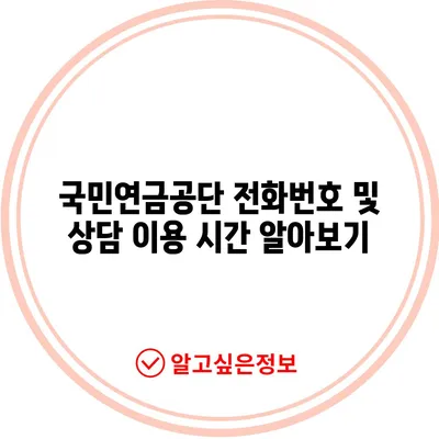 💡 국민연금공단의 전화 상담 방법과 운영 시간을 쉽게 찾아보세요. 💡
