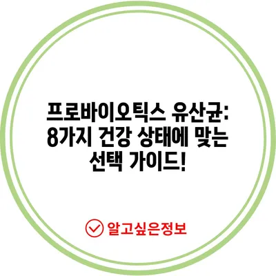 프로바이오틱스 유산균: 8가지 건강 상태에 맞는 선택 가이드!