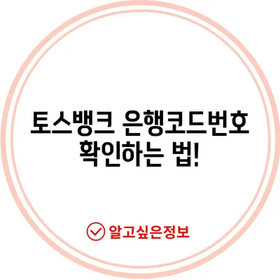 💡 토스뱅크의 은행코드번호를 쉽게 확인하는 방법을 알아보세요! 💡
