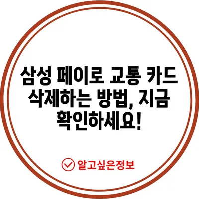 삼성 페이로 교통 카드 삭제하는 방법, 지금 확인하세요!